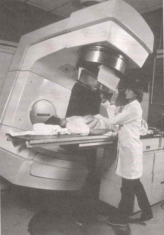 Radiation therapy - radiating the location of tumor as outpatient with mask, mould, or mark (tattoo) to maintain the exact location for treatment.