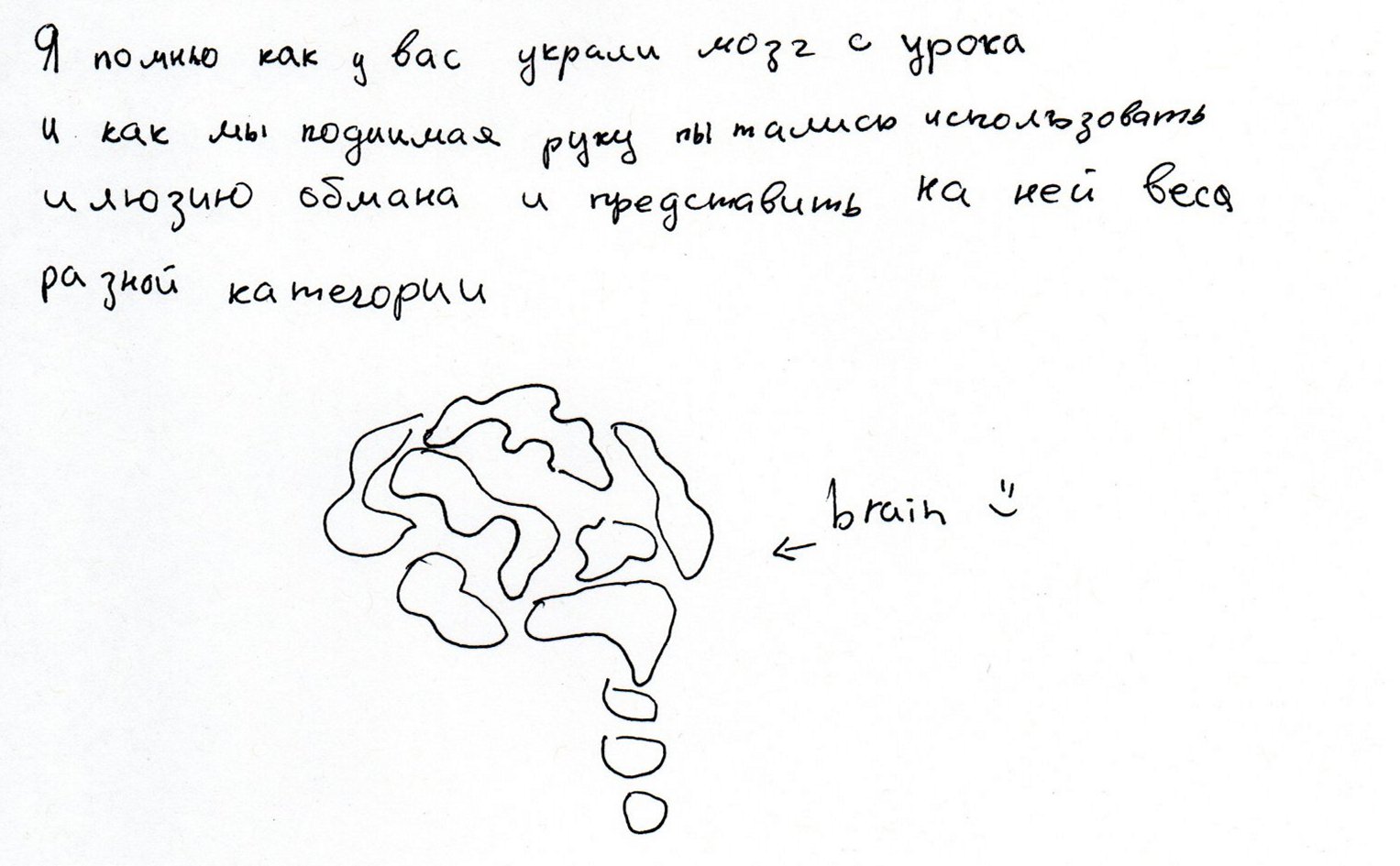Yelled "I stole your brain"
