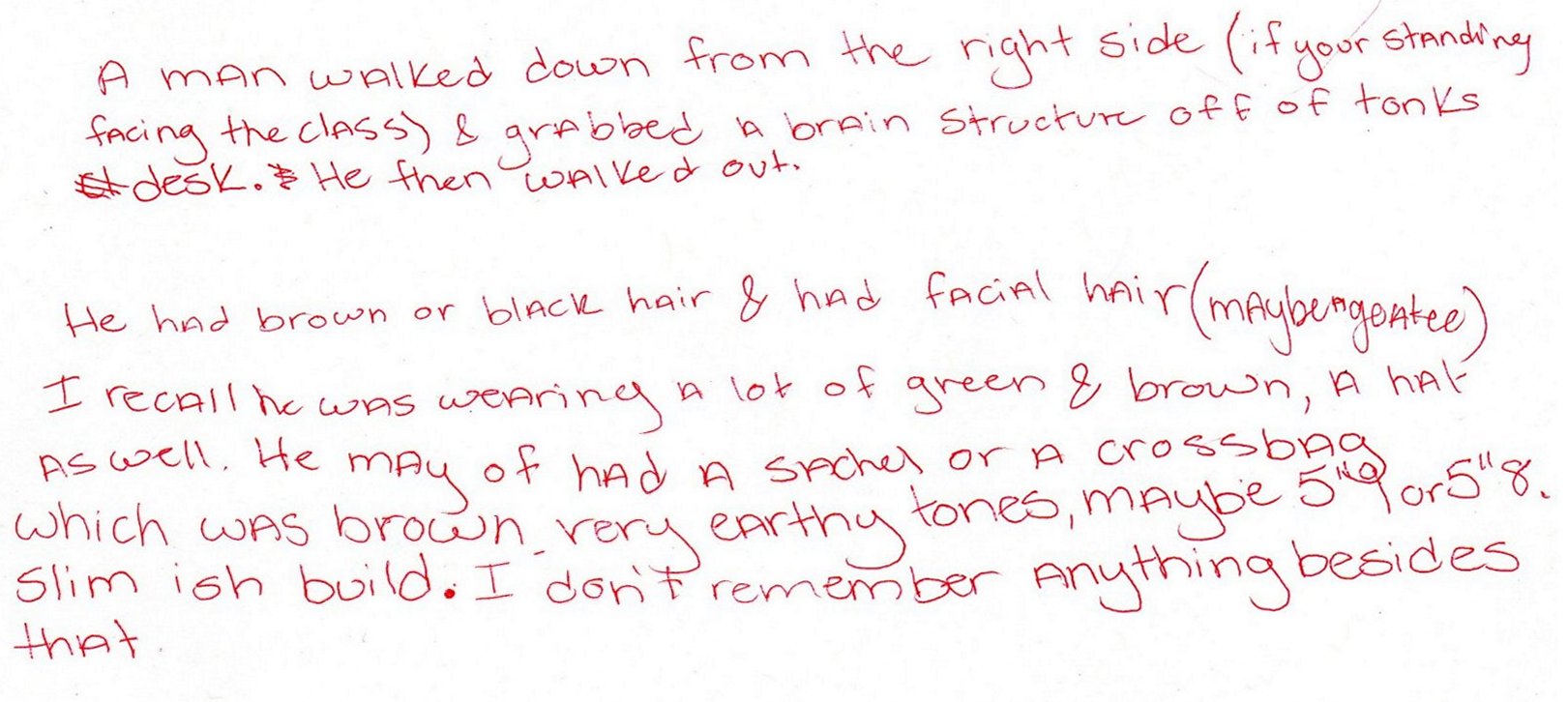 I believe it was already removed from your desk at the start of class or you tucked it away yourself atthe start of class to plant the false memory in our heads