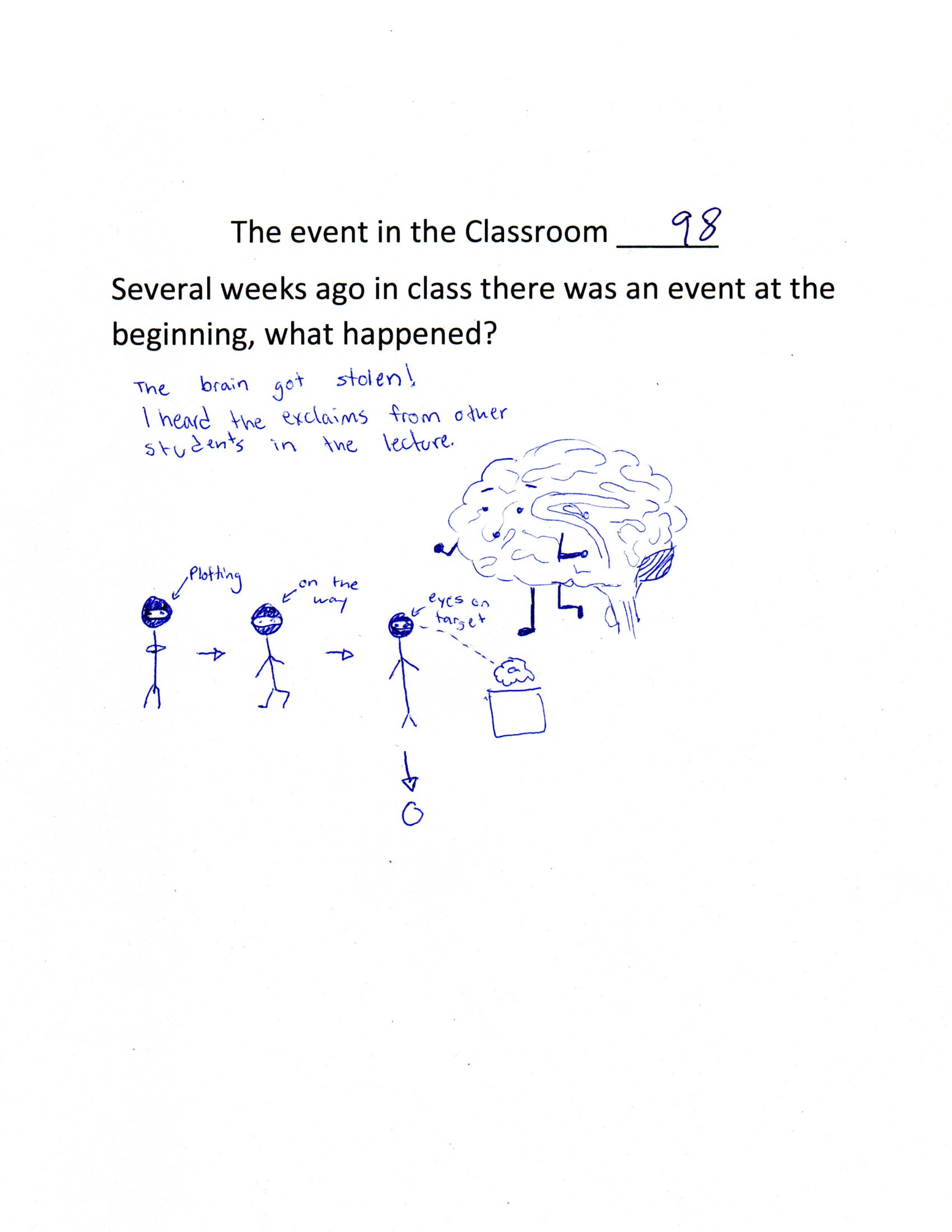 Someone telling the professor his brain was stolen