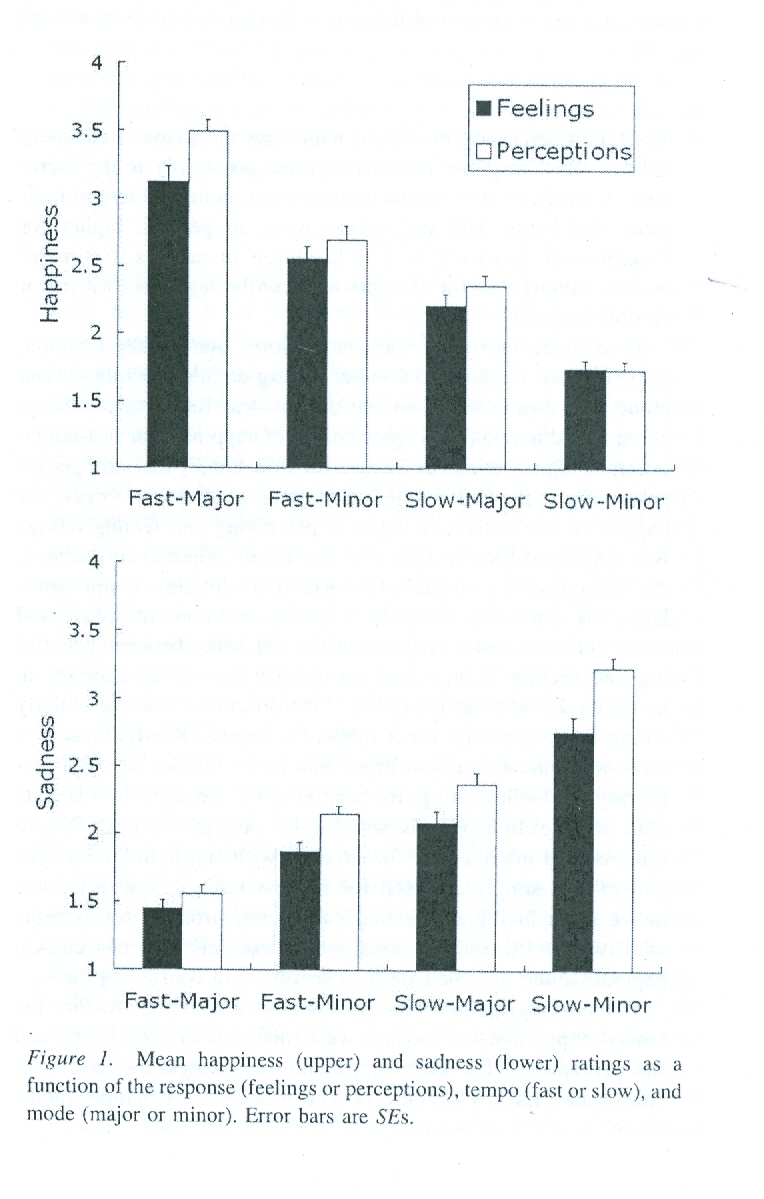 Music and Emotion shows that certain musical forms convey sad emotions (slow tempo minor keys) and others happy emotions (up-tempo major keys) although cultural forms of music are fuilly univsersal with respect to emotional labels and meaning. ie. Mozart & Albinoni