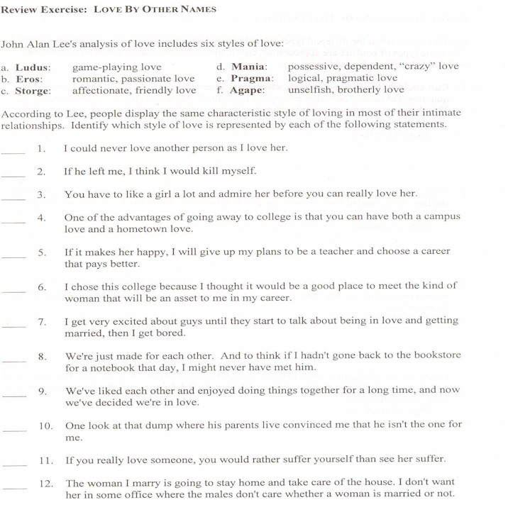 John Alan Lee suggests six styles of Love:
