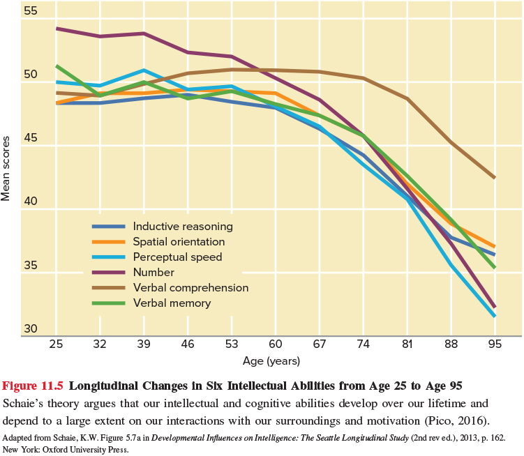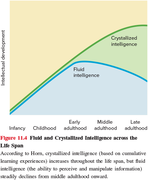 Crystallized intelligence, an individual’s accumulated information and verbal skills, continues to increase in middle adulthood