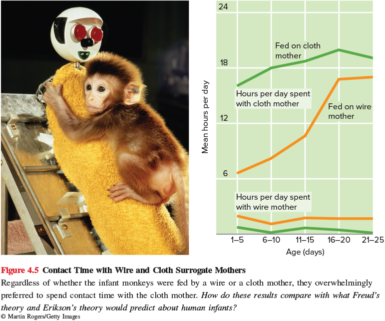 Harlows (1962) Early emotional attachment was believed to be formed during cuddling with mother.